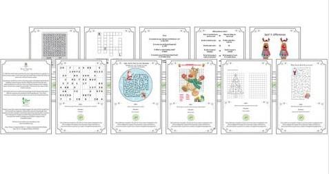 - Contains a Christmas activity scroll, as well as a paper hat and a joke